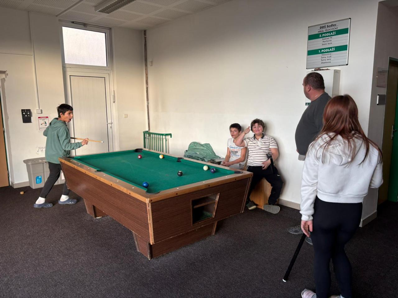 Vzhledem k nepříznivému počasí během víkendu jsme uspořádali turnaj v kulečníku a stolním tenise. Děti si s chutí zasoutěžily a celé dopoledne proběhlo v klidné a příjemné atmosféře. Na závěr byly dětem rozdány drobné ceny.
