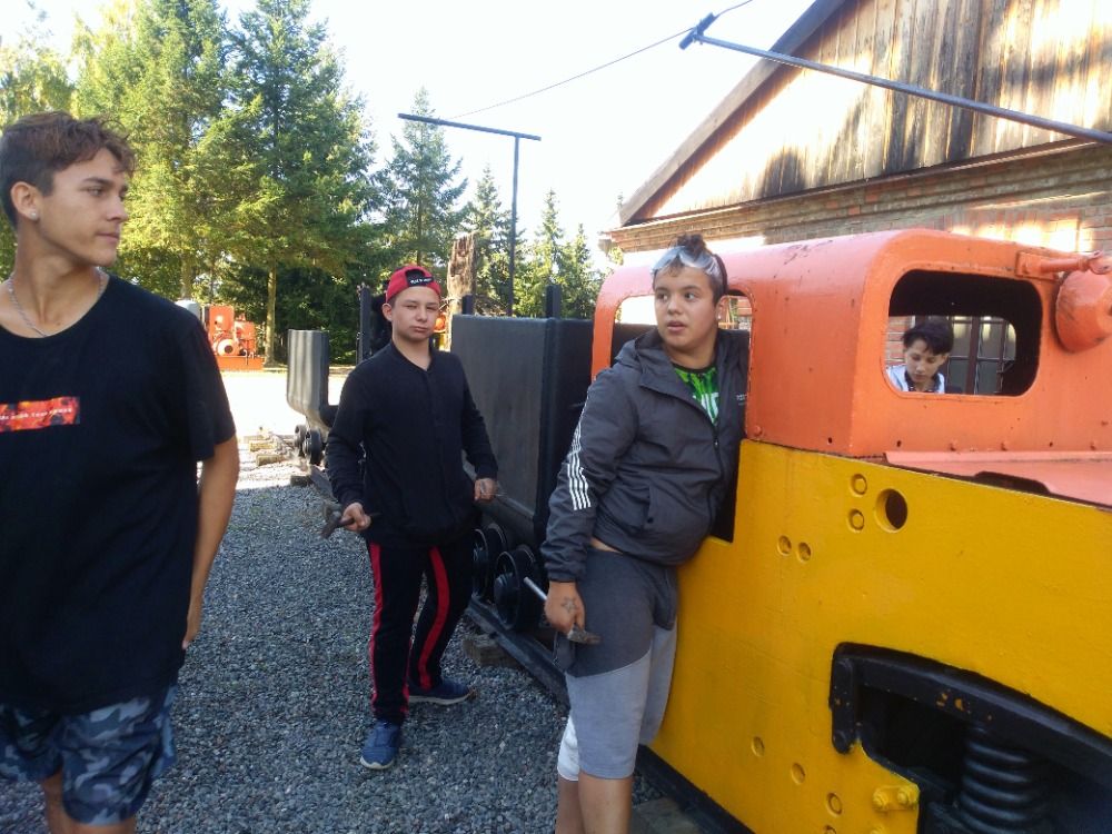Po hodinovém kutání následovala prohlídka nádvoří této šachty, kde žáci zhlédli expozici důlních vozíků a lokomotiv, které byly používány jak k přepravě rudy, tak k přepravě horníků. Zjistili historii žentouru i rumpálu, vyzkoušeli si sílu, kterou museli zvířata, zejména koně převést na točivý moment na řemenici. Zazvonili si na místní zvoničku.