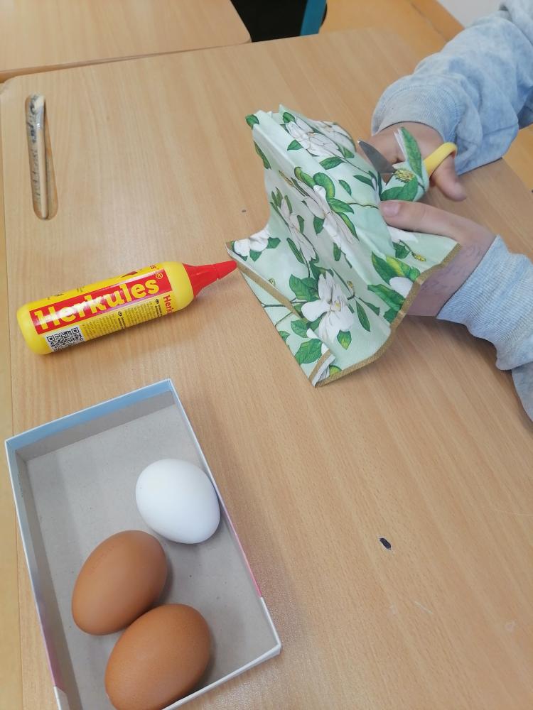 Vyzkoušely jsme ubrouskovou techniku, která nás všechny bavila. Hotové kraslice nyní zdobí vchod do školy a navozují příjemnou sváteční atmosféru.