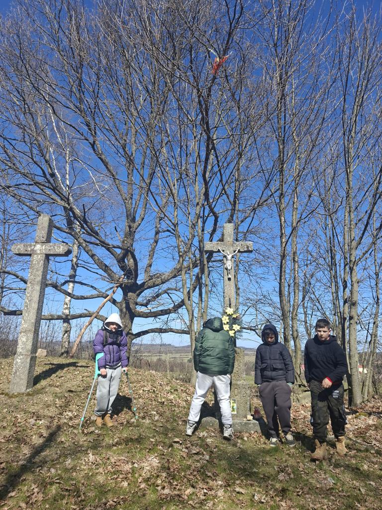S třídou chlapců jsme se vydali na velikonoční putování. Připomněli jsme si význam velikonočních svátků i důležité události z historie. Žáci si nejprve vyrobili dřevěný kříž, který pak společně nesli po křížové cestě v Jistebnici. U jednotlivých zastavení jsme si povídali o životní cestě Ježíše Krista a o událostech, které ji provázely. Společně jsme se snažili porozumět motivům jeho jednání a vcítit se do jejich významu.